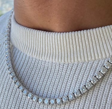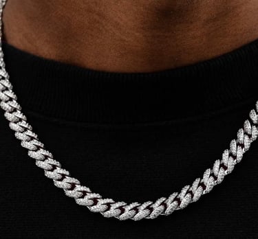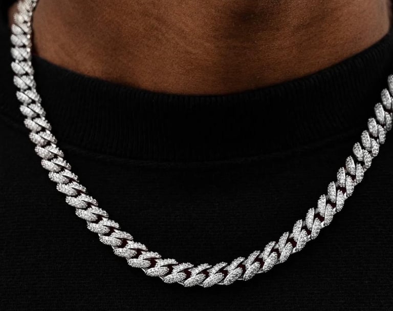 Channel crisp, clean style with the Frostline Chain, a platinum masterpiece that radiates cool sophistication. Its sleek, icy-polished finish and bold, structured links create a look that’s both modern and timeless. Designed for men who move with quiet confidence, this chain delivers a frosted gleam that stands out in any setting — from sharp suits to laid-back streetwear.
